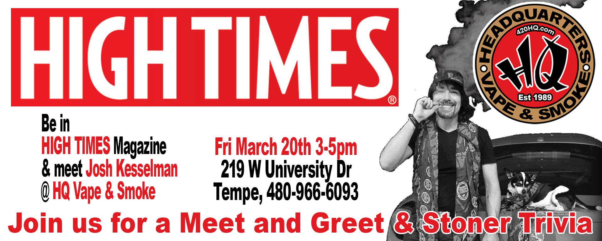 HQ Vape and Smoke in Tempe, AZ Tempe HQ Vape And Smoke219 W University Dr.Tempe, AZ 85281Get Direction(480) 966-6093Monday to Saturday – 9:00 am to 10:00pmSunday – 11:00 am to 8:00 pm Contact Us Call (480) 966-6093 for Product Availability Name * Email * Subject * Select Loction* TempeDenverLubbock Your Message (optional)